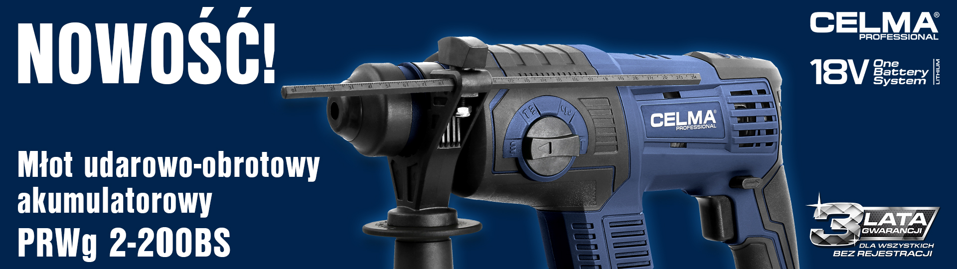 Młot udarowo-obrotowy CELMA Professional PRWg 2-20OBS 18V 1x4Ah SDS Plus 2J + Miara MAKITA 3,5m