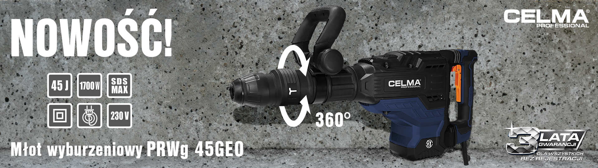 Młot wyburzeniowy CELMA Professional PRWg 45GEO 1700W SDS-MAX 45J