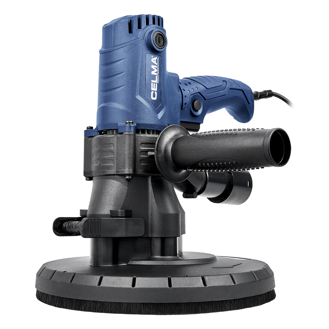 Szlifierka do gipsu CELMA Professional PRBs 225GEO przeznaczona jest do szlifowania ścian i sufitów z płyt kartonowo-gipsowych, tynków, gładzi gipsowych, wykańczania spoin pomiędzy płytami gipsowo-kartonowymi oraz usuwania niewielkich nierówności powierzchni tynków. Zapewnia wysoki komfort pracy, doskonałe wykończenie powierzchni oraz wyjątkową mobilność dzięki niskiej masie, dobremu wyważeniu konstrukcji, odpowiednio rozmieszczonym uchwytom oraz długiemu, 4-metrowemu kablu. Regulacja obrotów w szerokim zakresie pozwala na właściwe dostosowanie prędkości obrotowej do rodzaju wykonywanej pracy. Zintegrowany i wydajny system odpylający oraz dołączony do zestawu pojemny worek na pył umożliwiają pracę bez odkurzacza. W celu zwiększenia efektywności zbierania pyłu z obrabianych powierzchni zalecana jest praca z maszyną podłączoną do odkurzacza przemysłowego, co umożliwia dołączony do zestawu adapter.