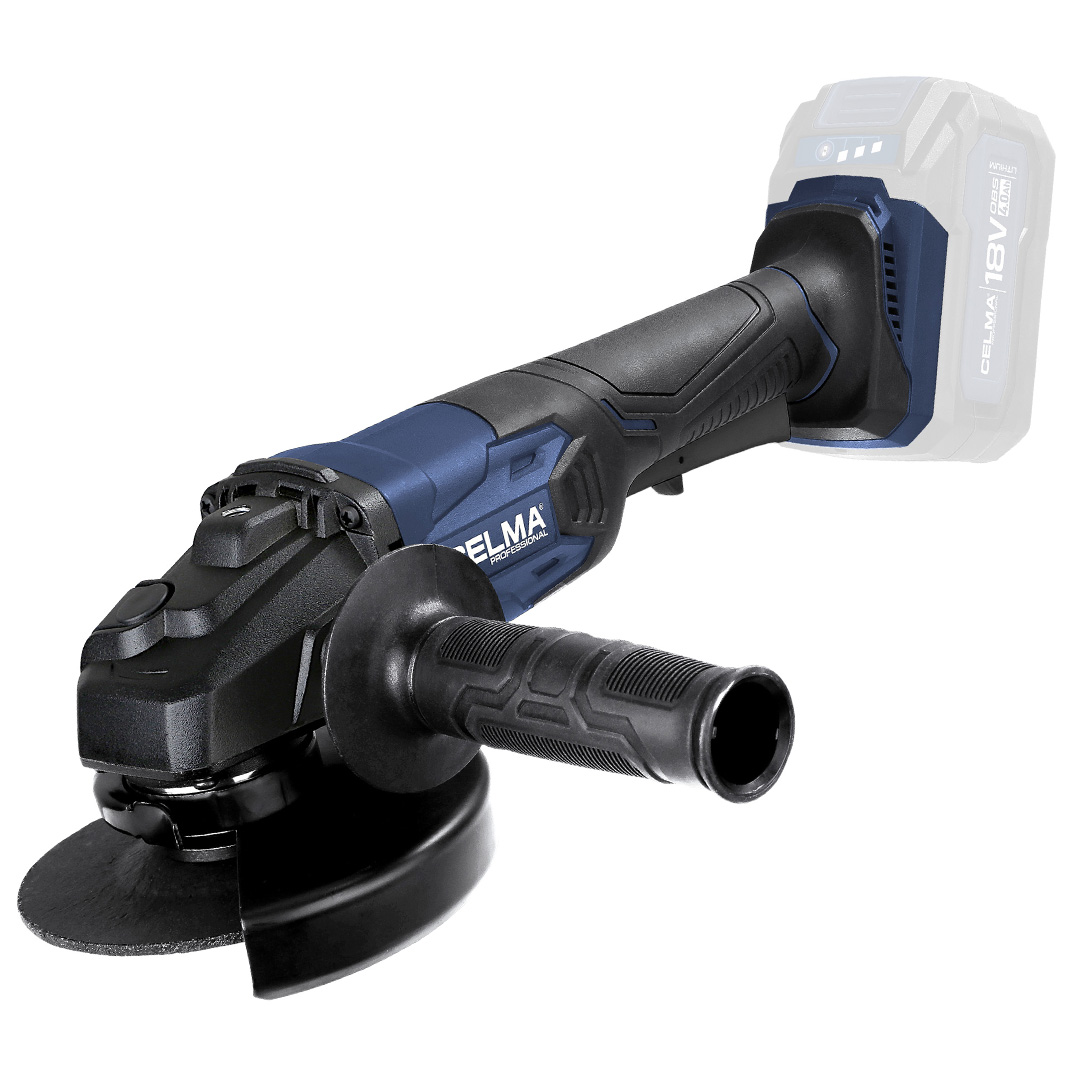 Szlifierka kątowa CELMA Professional PRAg-Li 125OBS należy do serii narzędzi zasilanych za pomocą jednego akumulatora 18V OBS (One Battery System). Zestaw nie zawiera akumulatora i ładowarki. Ergonomicznie ukształtowany korpus wraz z wygodną rękojeścią dodatkową oraz niewielki ciężar sprawiają, że szlifierka jest łatwa do utrzymania w rękach podczas pracy. Niewielkie rozmiary głowicy pozwalają na pracę szlifierką w miejscach trudno dostępnych. Dla zwiększenia bezpieczeństwa, włącznik szlifierki umieszczono na dole uchwytu głównego, a mechanizm spustowy został zabezpieczony kontrblokadą, uniemożliwiającą przypadkowe uruchomienie. Także dla zwiększenia komfortu użytkowania szlifierka została wyposażona w funkcję płynnego startu oraz osłonę tarczy szlifierskiej regulowaną beznarzędziowo. Ponadto szlifierka posiada zabezpieczenie przed przeciążeniem zmniejszające ryzyko uszkodzenia maszyny. Każdy akumulator systemu OBS posiada praktyczny wskaźnik stanu naładowania.