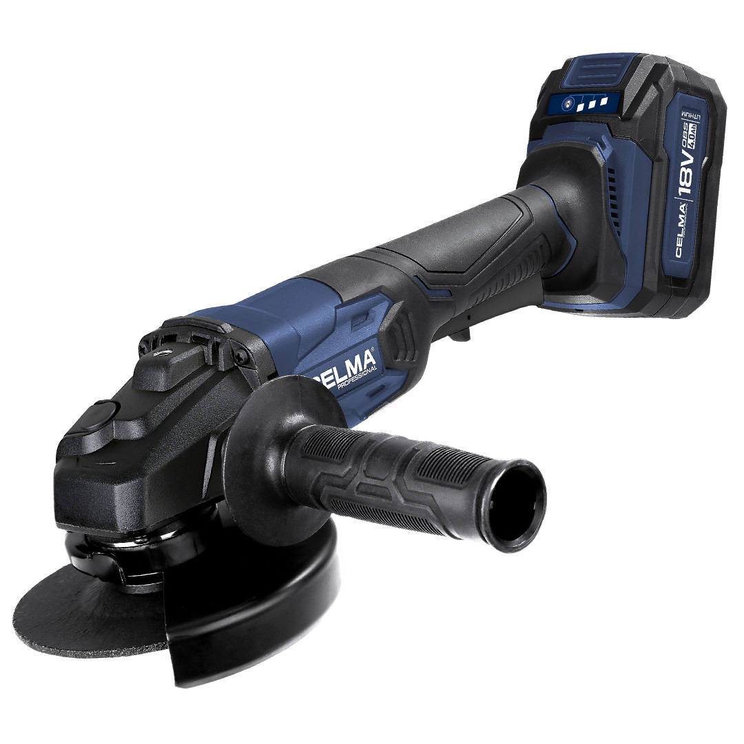 Szlifierka kątowa CELMA Professional PRAg-Li 125OBS należy do serii narzędzi zasilanych za pomocą jednego akumulatora 18V OBS (One Battery System). Ergonomicznie ukształtowany korpus wraz z wygodną rękojeścią dodatkową oraz niewielki ciężar sprawiają, że szlifierka jest łatwa do utrzymania w rękach podczas pracy. Niewielkie rozmiary głowicy pozwalają na pracę szlifierką w miejscach trudno dostępnych. Dla zwiększenia bezpieczeństwa, włącznik szlifierki umieszczono na dole uchwytu głównego, a mechanizm spustowy został zabezpieczony kontrblokadą, uniemożliwiającą przypadkowe uruchomienie. Także dla zwiększenia komfortu użytkowania szlifierka została wyposażona w funkcję płynnego startu oraz osłonę tarczy szlifierskiej regulowaną beznarzędziowo. Ponadto szlifierka posiada zabezpieczenie przed przeciążeniem zmniejszające ryzyko uszkodzenia maszyny. Każdy akumulator systemu OBS posiada praktyczny wskaźnik stanu naładowania.