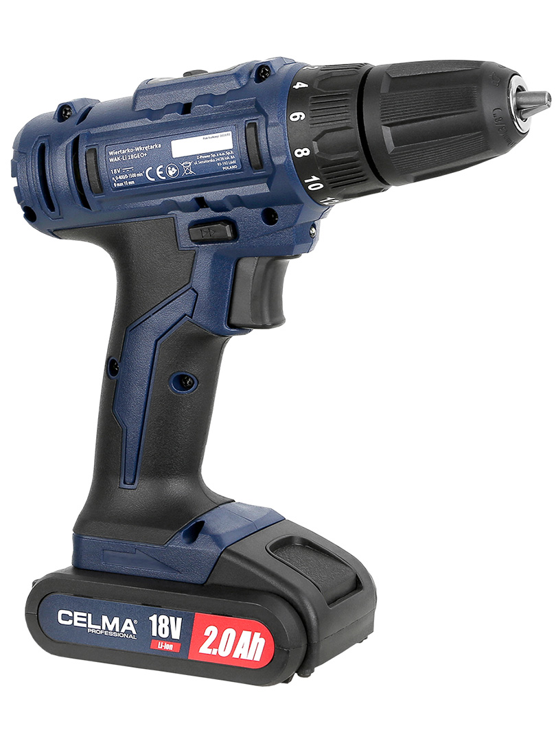 Wiertarko-wkrętarka Celma WAK-Li 18GEO+ została wyposażona w przekładnie dwubiegową, hamulec elektroniczny, dwa akumulatory Li-ion o pojemności 2 Ah każdy oraz ładowarkę z czasem ładowania ok.1 godziny – takie połączenie gwarantuje efektywną oraz wysoce wydajną pracę. Ponadto urządzenie posiada jasną diodę LED doświetlającą miejsce wykonywanej pracy oraz praktyczny wskaźnik stanu naładowania akumulatora. Kompaktowe wymiary i niewielka waga wiertarko-wkrętarki gwarantują komfortową pracę przez długi czas. Cały zestaw jest spakowany do trwałej oraz kompaktowej walizki, która znacznie ułatwi transport, przechowywanie, a także zmniejszy ryzyko przypadkowego uszkodzenia elektronarzędzia wraz z wyposażeniem.