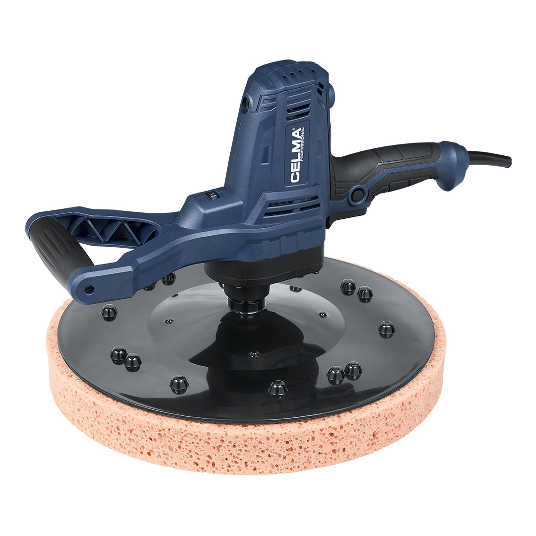 Zacieraczka do tynków Celma PRBt 390S przeznaczona jest do zacierania oraz wygładzania tynków wapienno-cementowych, gipsowych zewnętrznych i wewnętrznych, usuwania nierówności powierzchni “starych” tynków, zdzierania tapet, usuwania wypływek zaprawy spomiędzy cegieł lub przyschniętego tynku z betonowej podłogi. Urządzenie zostało zaprojektowane do długotrwałej pracy na dużych powierzchniach takie jak ściany, sufity oraz podłogi. Zapewnia wysoki komfort pracy oraz wyjątkową mobilność dzięki niskiej wadze, dobremu wyważeniu konstrukcji, odpowiednio rozmieszczonym gumowanym uchwytom oraz długiemu, 5 metrowemu kablu. Płynna regulacja obrotów w szerokim zakresie pozwala na właściwe dobranie prędkości obrotowej do wykonywanej pracy.