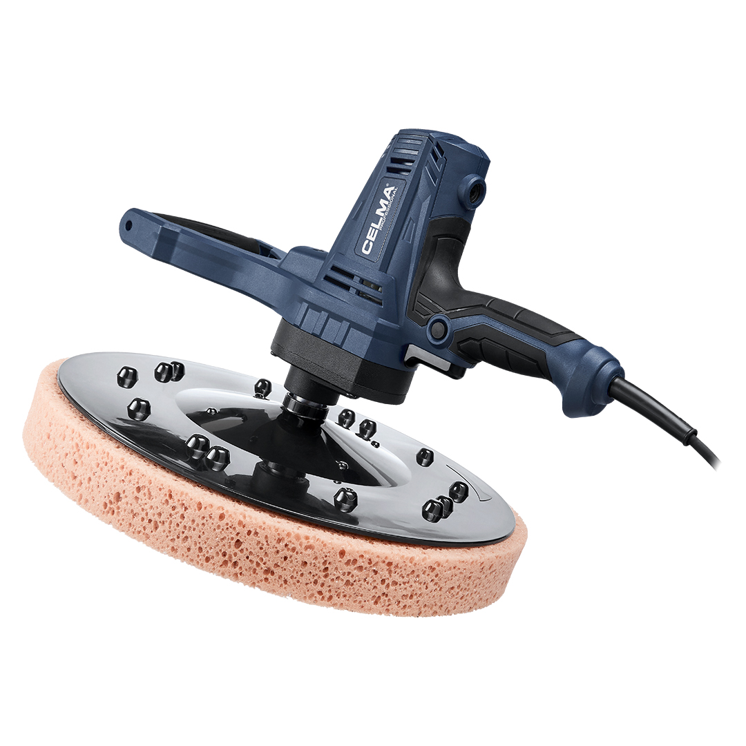 Zacieraczka do tynków Celma PRBt 390S przeznaczona jest do zacierania oraz wygładzania tynków wapienno-cementowych, gipsowych zewnętrznych i wewnętrznych, usuwania nierówności powierzchni “starych” tynków, zdzierania tapet, usuwania wypływek zaprawy spomiędzy cegieł lub przyschniętego tynku z betonowej podłogi. Urządzenie zostało zaprojektowane do długotrwałej pracy na dużych powierzchniach takie jak ściany, sufity oraz podłogi. Zapewnia wysoki komfort pracy oraz wyjątkową mobilność dzięki niskiej wadze, dobremu wyważeniu konstrukcji, odpowiednio rozmieszczonym gumowanym uchwytom oraz długiemu, 5 metrowemu kablu. Płynna regulacja obrotów w szerokim zakresie pozwala na właściwe dobranie prędkości obrotowej do wykonywanej pracy.