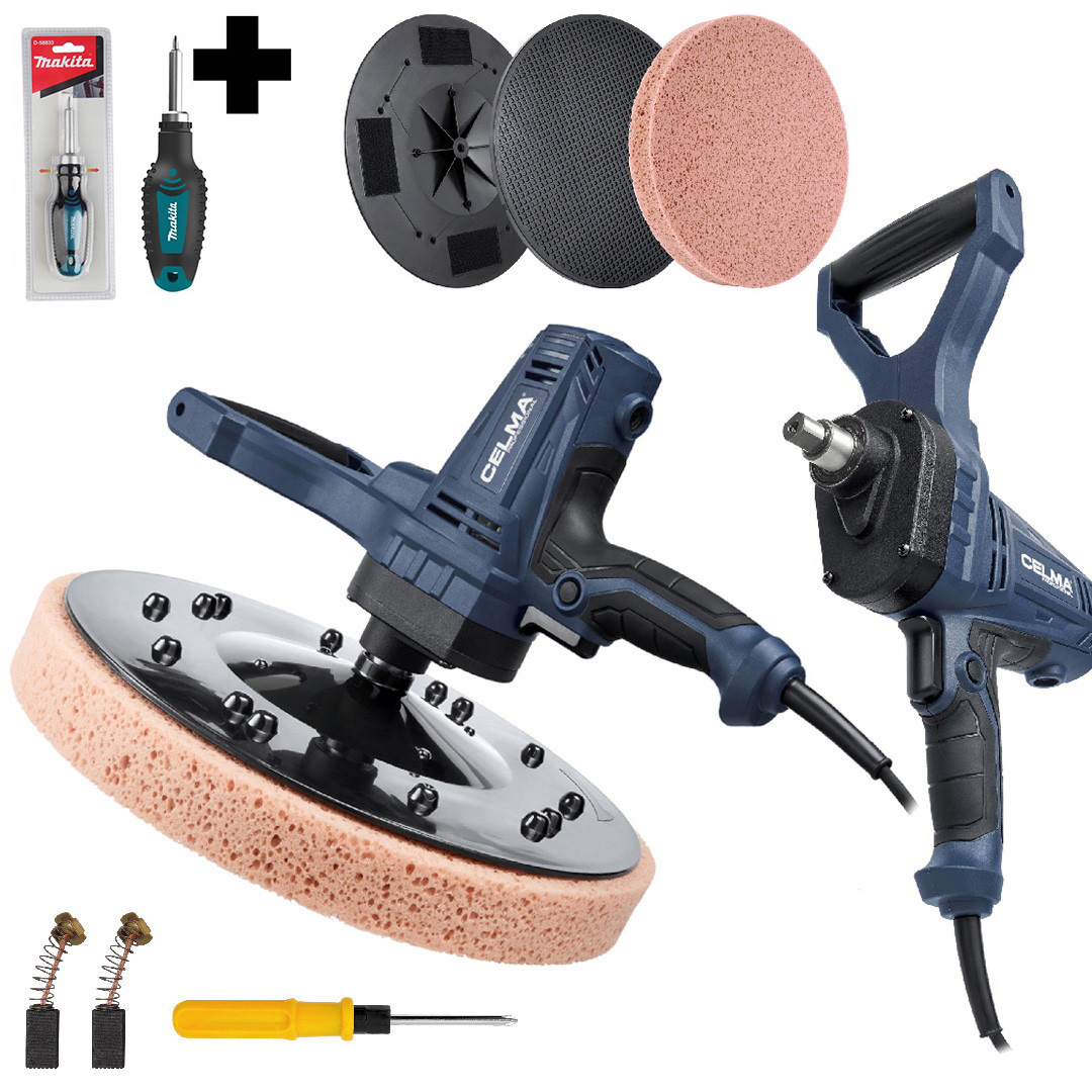 Zacieraczka do tynków Celma PRBt 390S przeznaczona jest do zacierania oraz wygładzania tynków wapienno-cementowych, gipsowych zewnętrznych i wewnętrznych, usuwania nierówności powierzchni “starych” tynków, zdzierania tapet, usuwania wypływek zaprawy spomiędzy cegieł lub przyschniętego tynku z betonowej podłogi. Urządzenie zostało zaprojektowane do długotrwałej pracy na dużych powierzchniach takie jak ściany, sufity oraz podłogi. Zapewnia wysoki komfort pracy oraz wyjątkową mobilność dzięki niskiej wadze, dobremu wyważeniu konstrukcji, odpowiednio rozmieszczonym gumowanym uchwytom oraz długiemu, 5 metrowemu kablu. Płynna regulacja obrotów w szerokim zakresie pozwala na właściwe dobranie prędkości obrotowej do wykonywanej pracy.