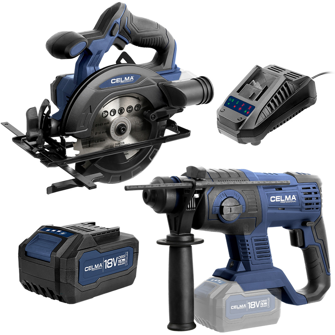 Zestaw OBS CELMA Professional Młotowiertarka 1x Aku 4Ah , Ładowarka + Pilarka tarczowa DBRc-Li 18OBS (One Battery System)